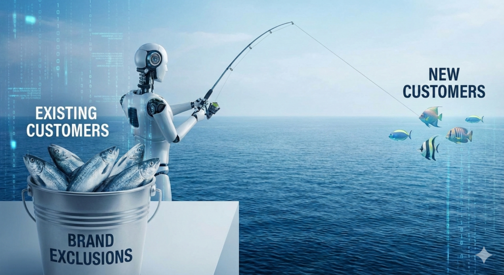 PMax나 AI 기반 캠페인의 고질적인 문제는 ‘쉬운 길’을 가려고 한다는 점입니다. 즉, 이미 우리 브랜드를 알고 검색해서 들어오는(전환 확률이 높은) ‘브랜드 키워드’에 광고비를 쏟아붓고 성과가 좋다고 보고할 수 있습니다.